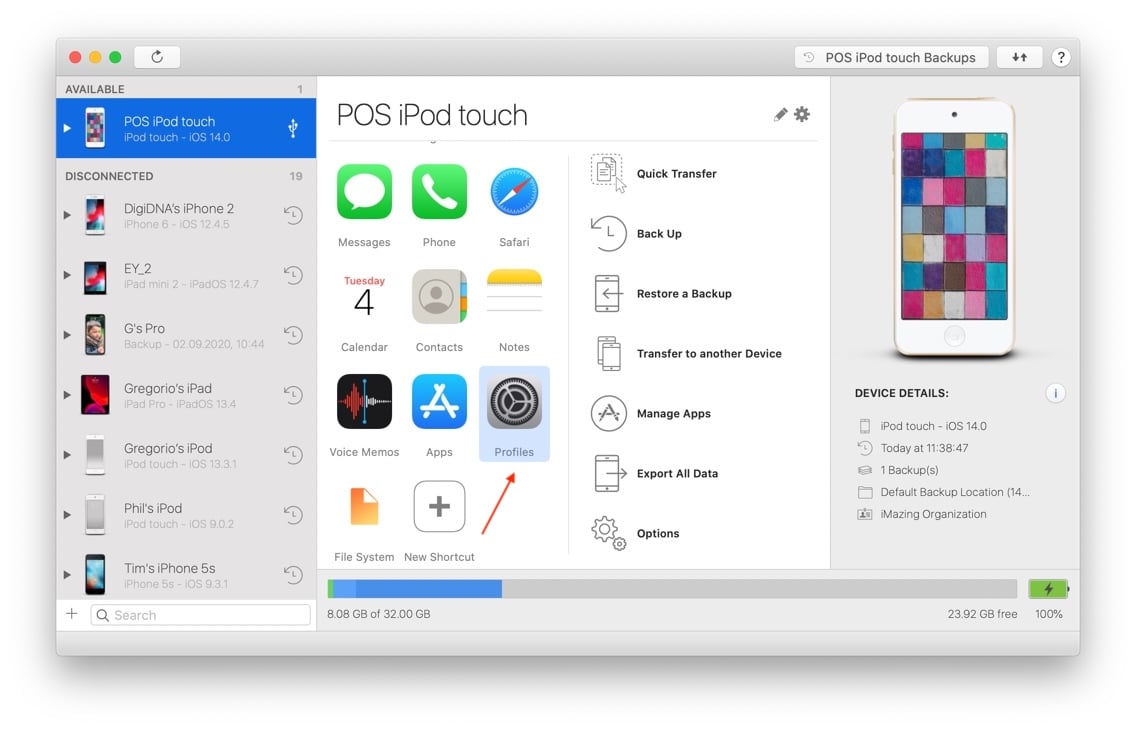 2. Profiles in iMazing