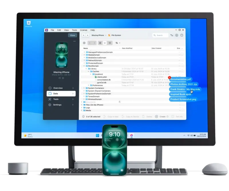 Explorez le système de fichiers et les sauvegardes de votre iPhone ou iPad sur votre Mac ou votre PC. Récupérez n'importe quel fichier, même à partir de sauvegardes chiffrées. Modifiez les sauvegardes pour apporter des corrections et des modifications avancées.