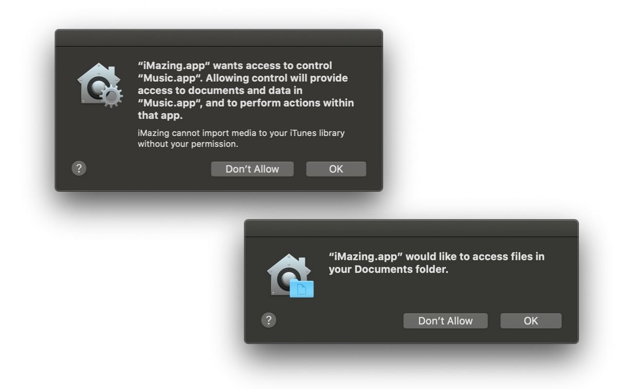 Already in macOS 10.14 Mojave, Apple had started to restrict which files and data independently distributed 3rd party apps could and could not access. Specifically, iMazing now required your permission to access iTunes backups, and to export or import media in iTunes.